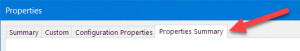 “属性摘要”选项卡显示了“配置属性”选项卡的反面。配置属性选项卡在左侧列出了配置,在右侧列出了这些配置的每个属性。“属性摘要”选项卡在左侧列出了属性,然后在右侧列出了每个配置的值。