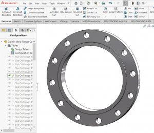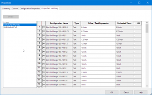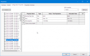 例如,这是一个具有数十种配置的示例部件。并且每个配置都有三个配置特定属性;标称管道尺寸、等级和 SWBOMpartno(SOLIDWORKS 材料清单零件编号)。